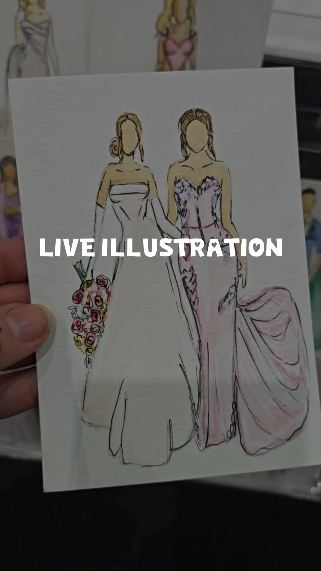 For wedding bookings, the bride and groom receive a complimentary A5 hand-painted illustration, included within the package price — a special keepsake from your day.
