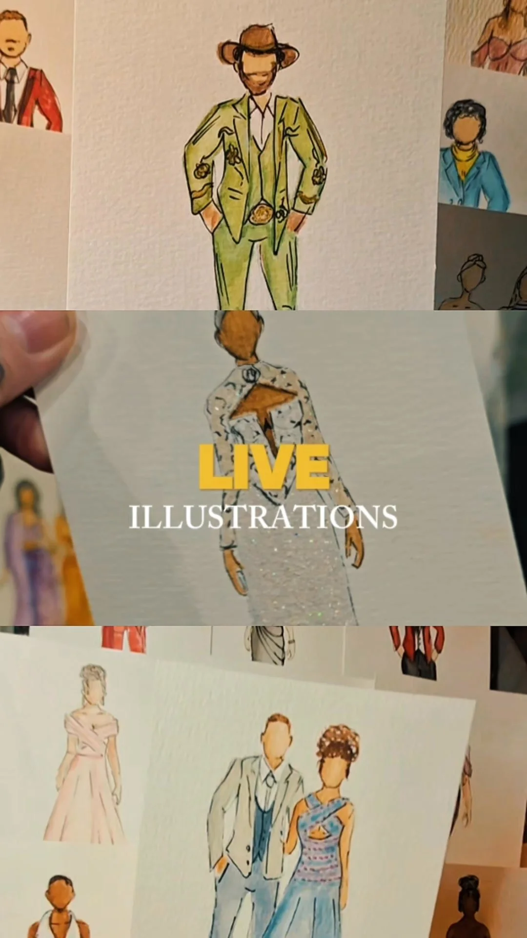 We offer three unique live illustration packages tailored to events of all sizes and types. Whether you're looking to entertain guests during a reception or prefer having an artist capture the essence of your entire event, we’re here to make your occasion truly unforgettable.