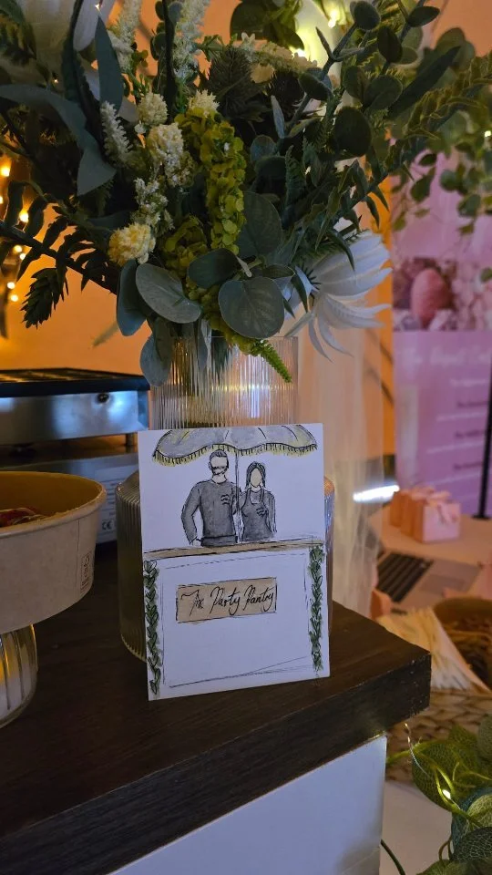 We’re a painting duo based in Yorkshire, UK, specialising in unique, hand-drawn illustrations of you and your guests. Whether you’re looking for personalised wedding favours to add a special touch to your big day, or want to make your corporate event truly unforgettable, we’re here to bring your moments to life with creativity and charm.